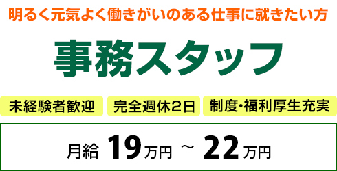 お客様との気持ちの良い接客と、社員がスムーズに仕事をしやすいように事務業務で活躍できます。
